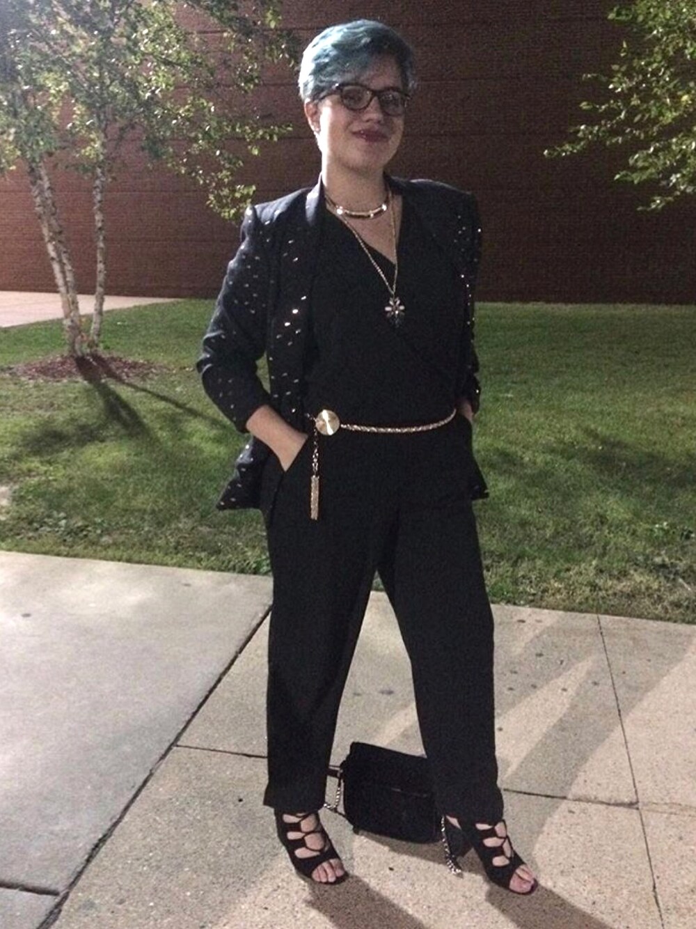 The first time I wore my trusty Banana Republic jumpsuit was at Homecoming 2016 with a blazer I got at a thrift store!