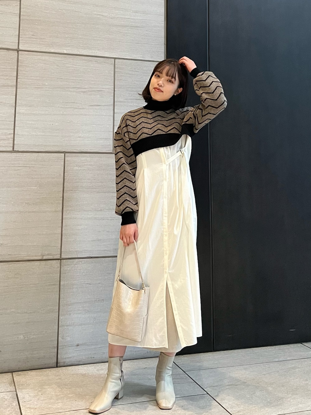 ショートニットはワンピースにレイヤードするのがおすすめです!