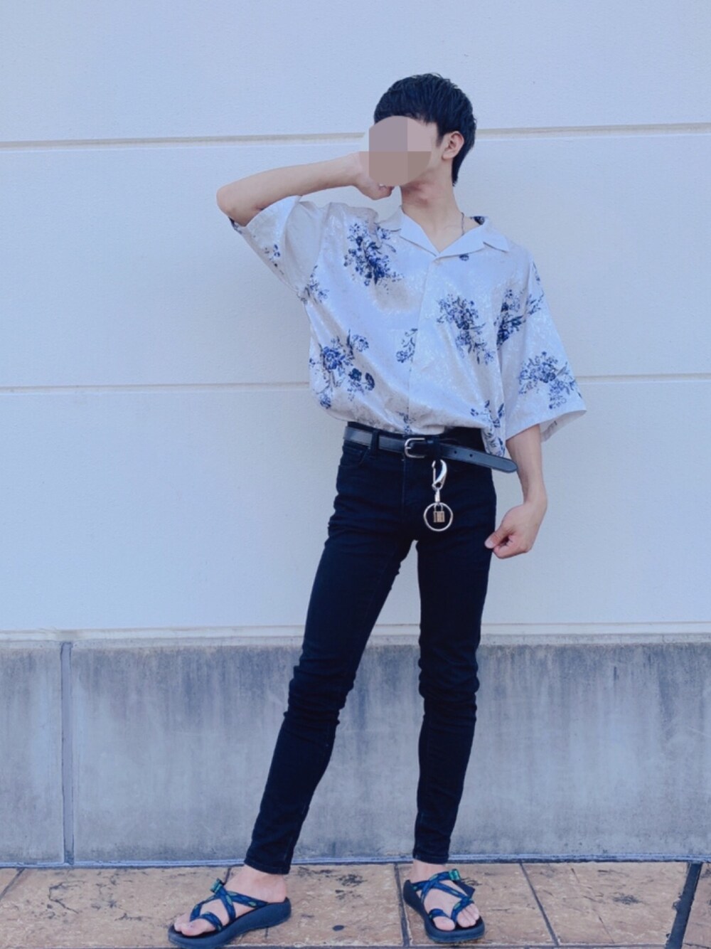 JUNRedのオープンカラーシャツが周りとの差別化も図れてかっこいい!ADRERのウォレットチェーンがカジュアルだからバランスがとれてる!