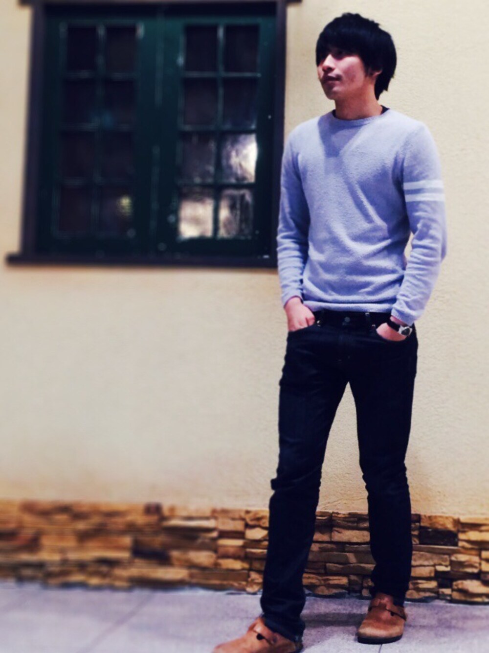春休みも終わり今日から学校。。 今日はラフに薄手のセーターとジーンズにサンダル。