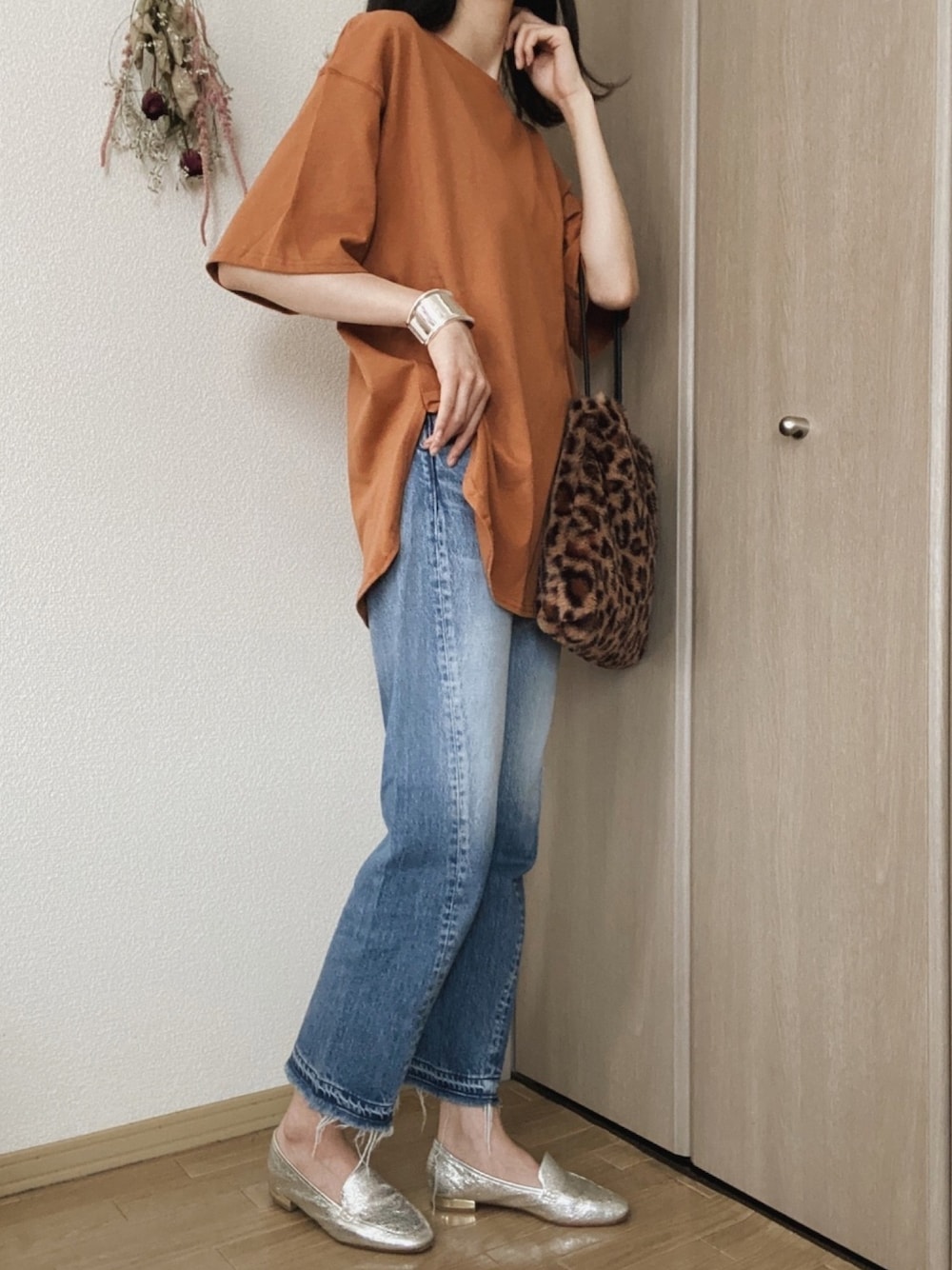 いいね、お気に入りありがとうございます✩ オーバーサイズTはスリットが入ってるので、インせずゆったりと着ました☻ 今日は気分でスニーカーではなくローファーに✨ どんどん涼しくなってきましたね🍂