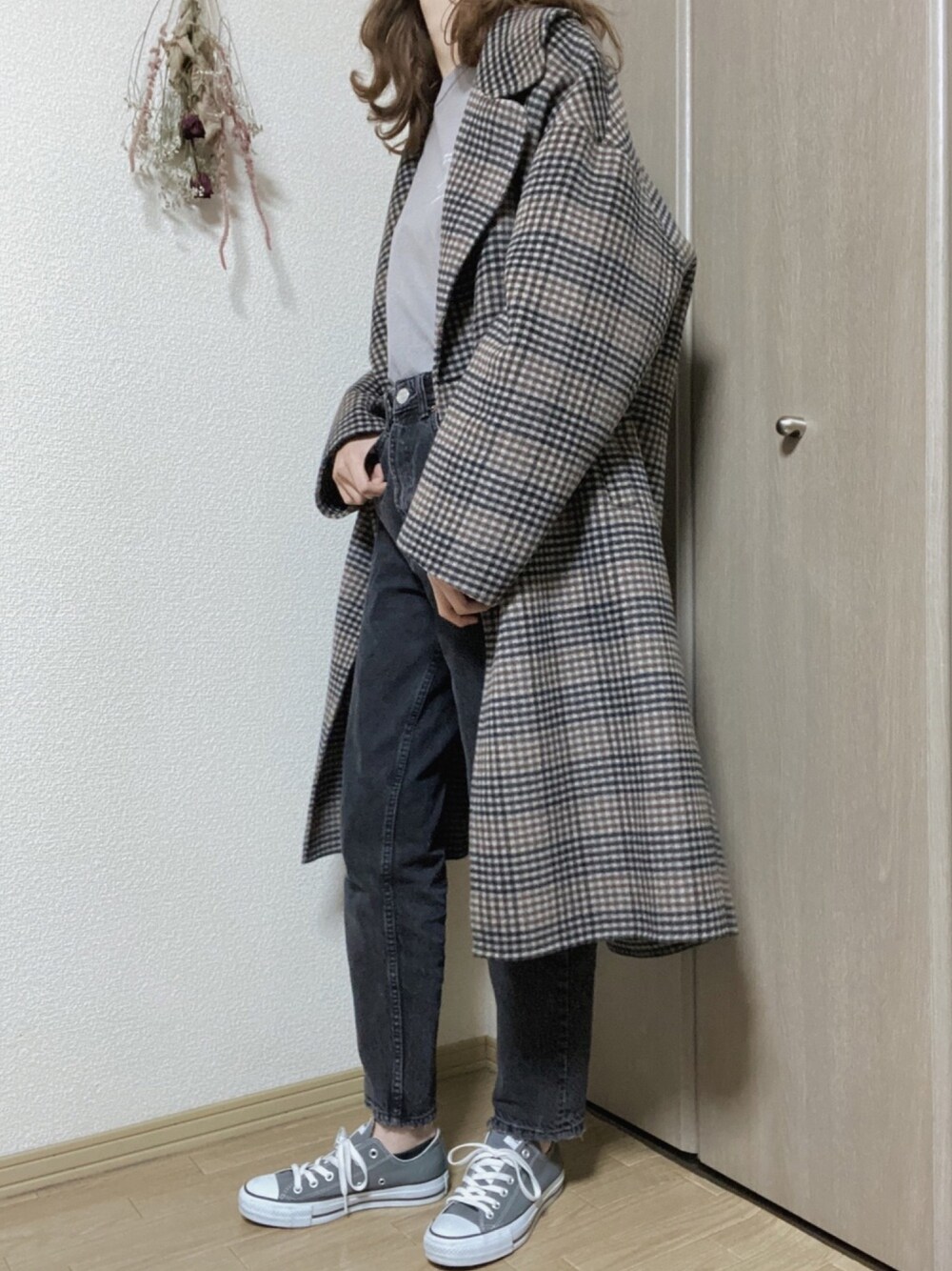 umeのチェスターコート「【WEB限定】BIGラペルリバーコート」を使ったコーディネート