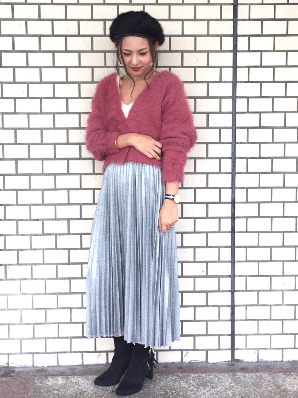 今年秋冬注目カラー☆彡.。 メタリックプリーツスカートと合わせて更に今年っぽく(o^^o) フェザー素材も程よく女性らしさを引き出してくれます(੭*ˊ꒳ˋ)੭♡