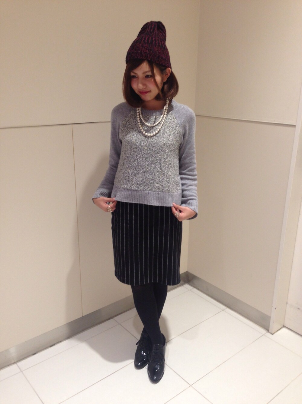 とってもお気に入りニット‼︎ 何にでも合わせれて、シンプルだけどツイードがさり気ないポイントに♡