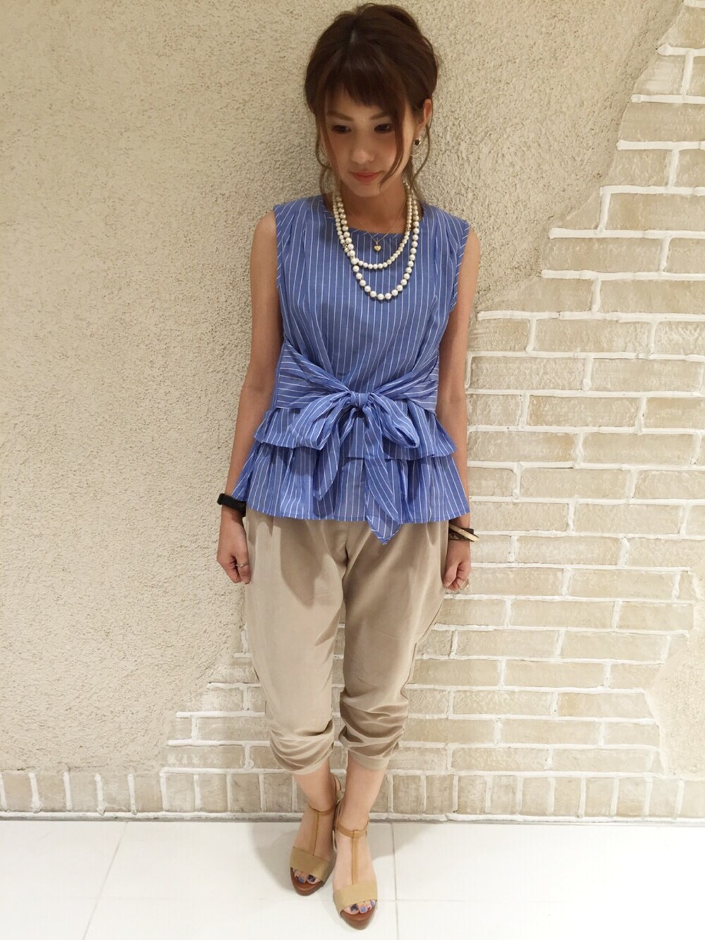 リボンブラウスを使ったオフィススタイル!! カッコイイパンツスタイルにかわいらしさをプラス♪