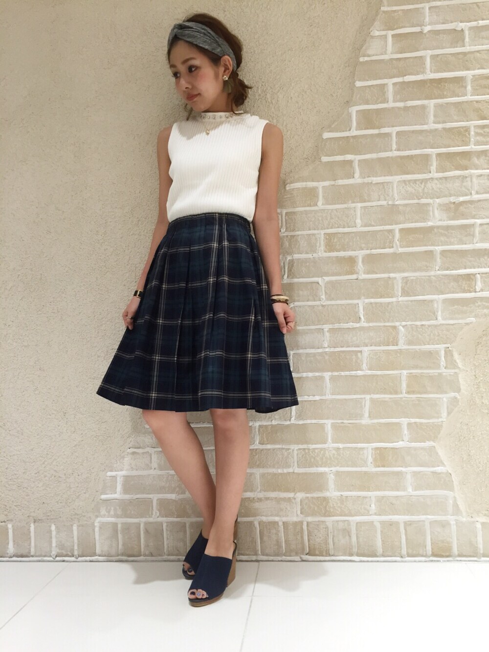 ラボの秋の新作コーデ♪ チェックのフレアスカートとハイネックニットで新鮮なコーディネートに☆ 夏っぽさも残る、新作秋コーデです^o^