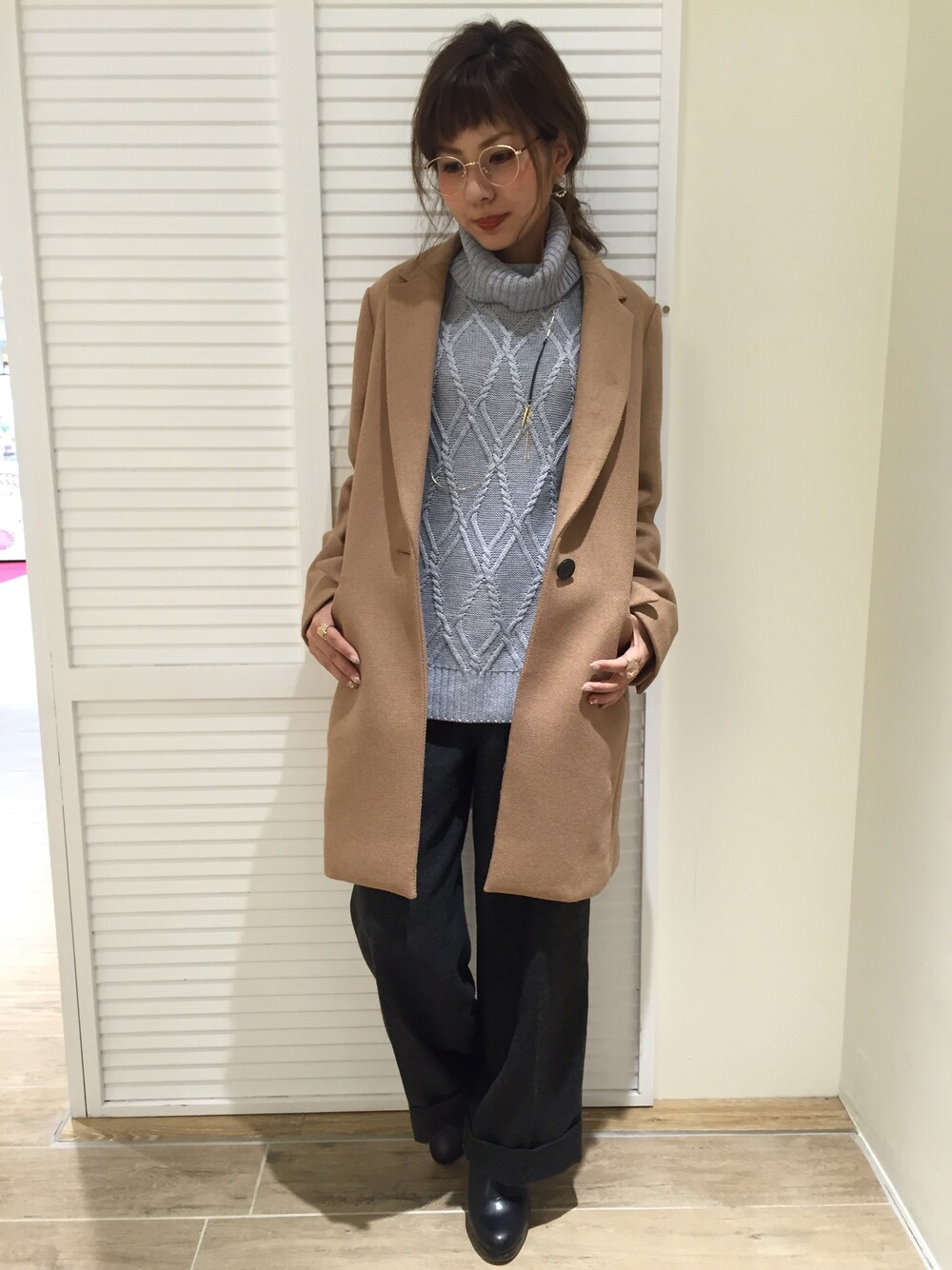 今年のトレンドをギュッと凝縮した緩めコーデ☆チェスターコートも長過ぎない丈なのでスッキリ見せてくれます(o^^o)