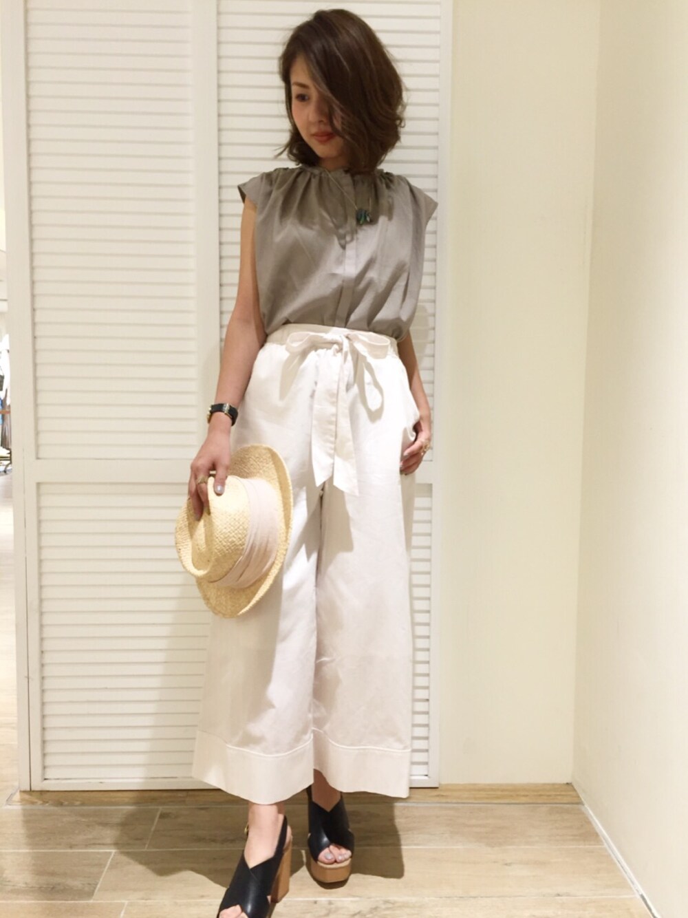大人カラーコーデ(*´︶`*)❤︎ シンプルアイテムで合わせているので、足元はボリュームを出しました! 小柄な方でも履きやすいワイドパンツ☆