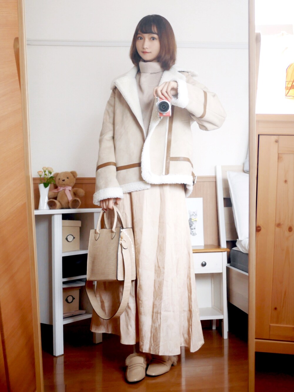 まお♡のブルゾン「フェイクムートンボアライダースジャケット」を使ったコーディネート