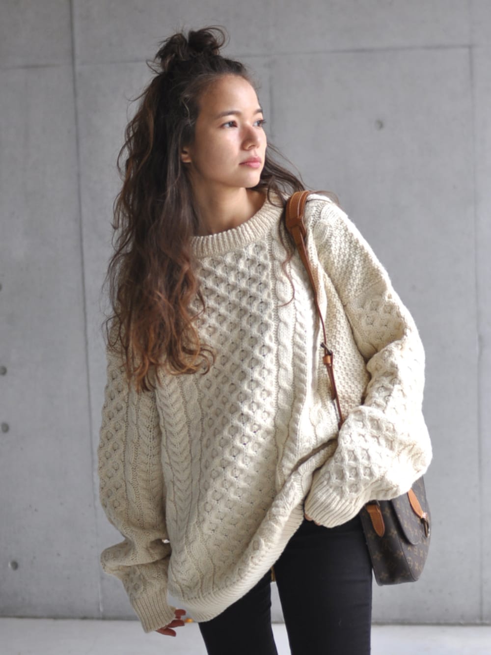 ホワイト系のニット/セーターを着用したレディースの冬コーディネートの1枚目の写真