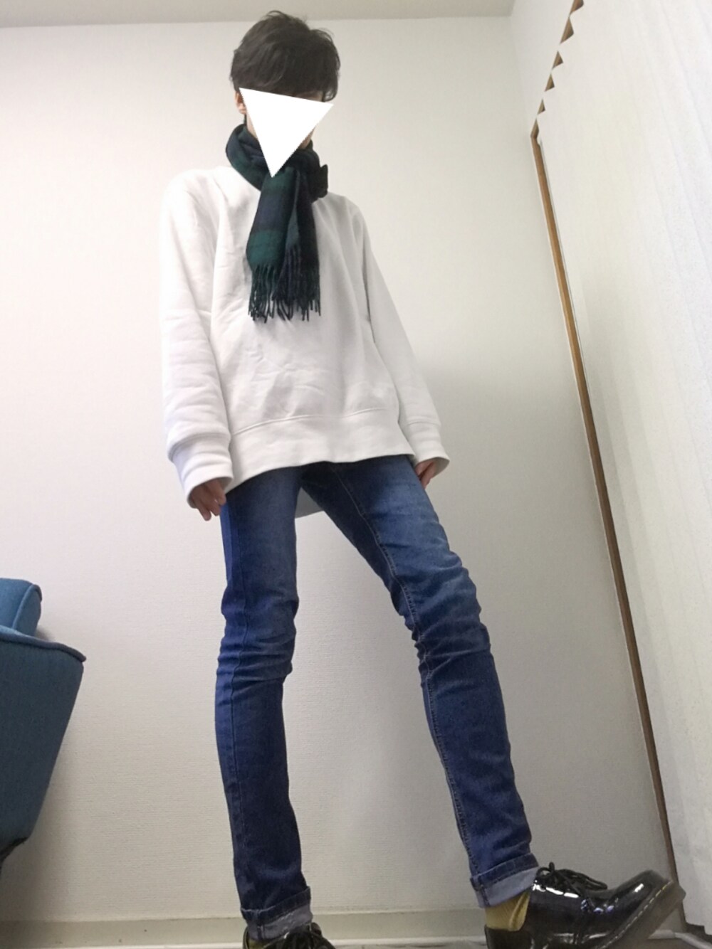 今日はスウェットコーデ マフラーは大判のもの 知り合いのお店で3000やったから購入✨ 女性もんやけど、マフラーやと関係ないやろ😁 いい色やしウール100%これはいいかいものしたね👍 トップス XL ボトムス XS シューズ 26