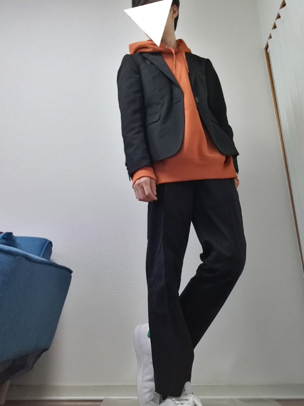 今日はセットアップコーデ モノトーン+オレンジ😁 久しぶりにスラックスはいたけどやっぱりいいね👍 気づいたらスキニーばっかはいてまうから、たまにはくとすごく良き😆 アウター S トップス M ボトムス 74 シューズ 26