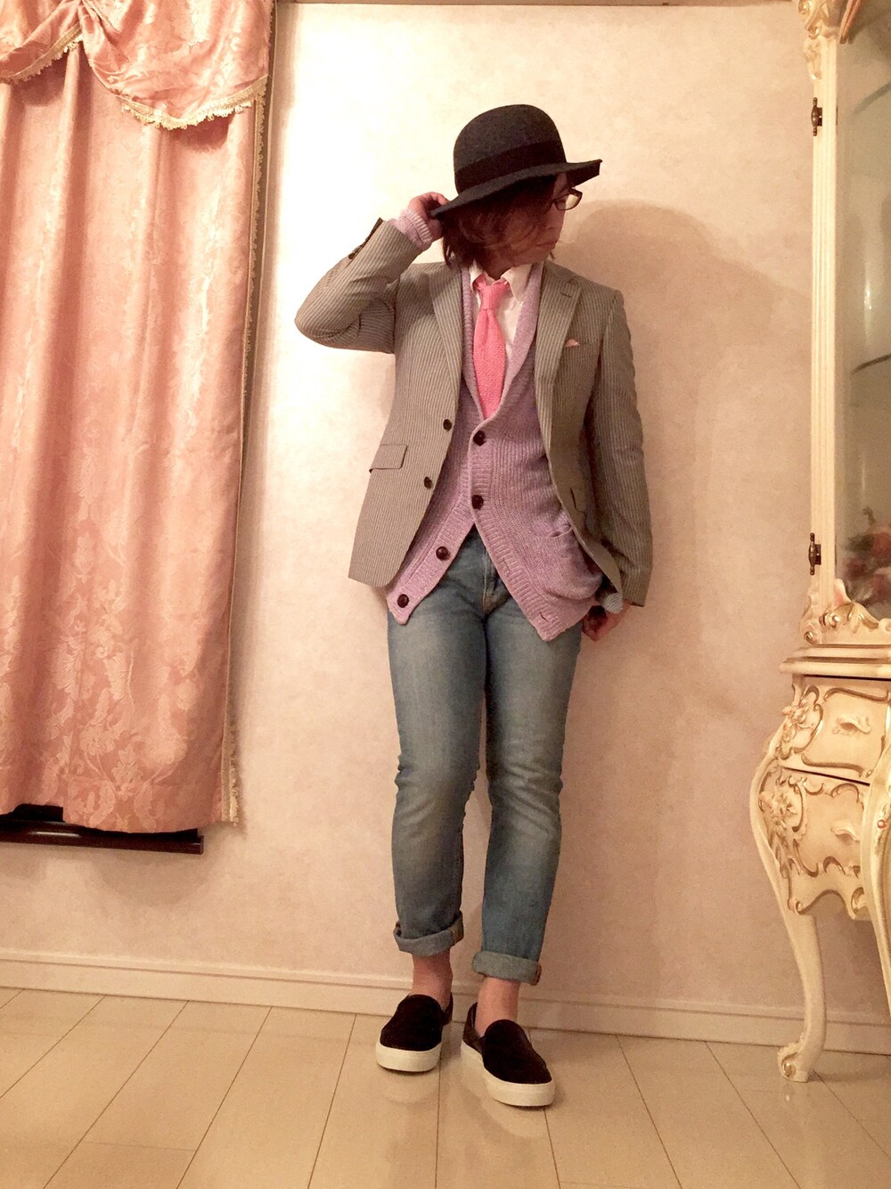 H&Mさんのピンクのネクタイにパープルのニットのコーデをパクry… リスペクトさせて頂きました( ̄▽ ̄)ニヤリッ