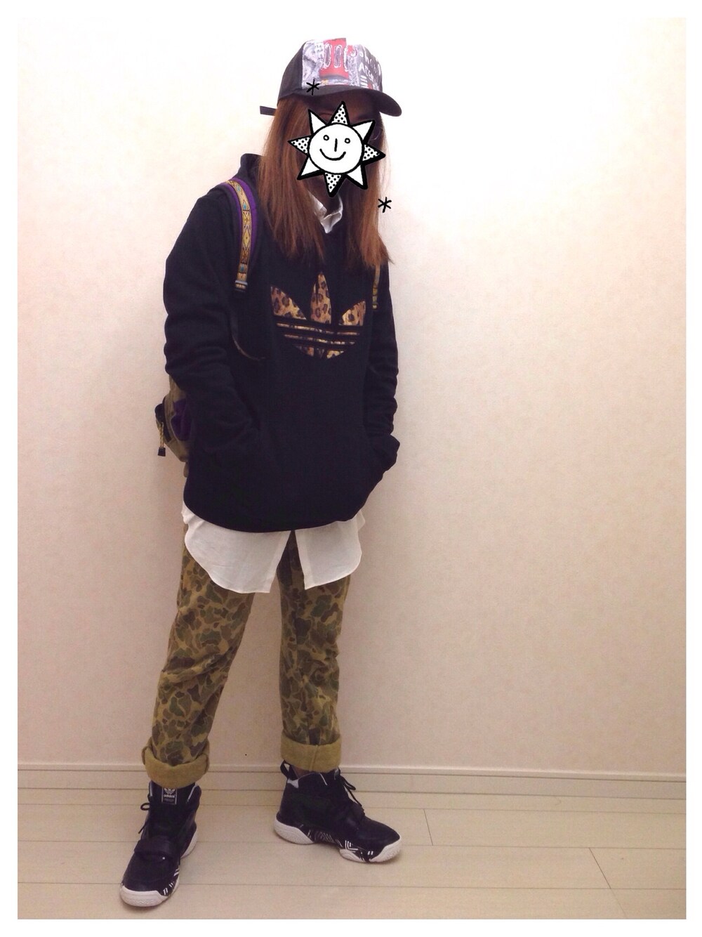 らくのパーカー「アディダス オリジナルス アニマル フーディ adidas Originals ANIMAL HOODIE」を使ったコーディネート