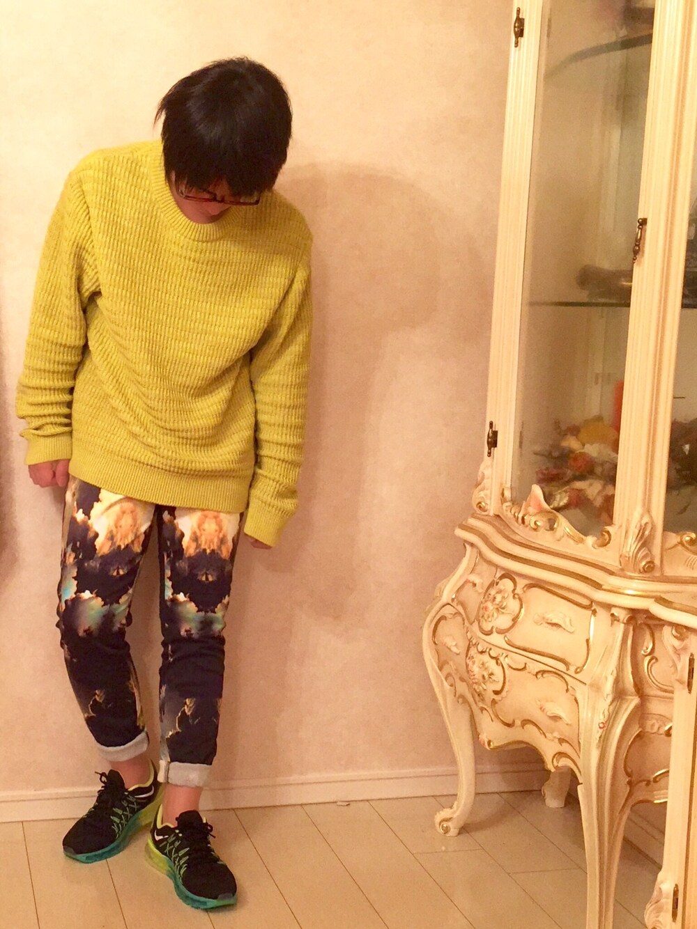 らくのニット/セーター「リップルロングスリーブニット」を使ったコーディネート