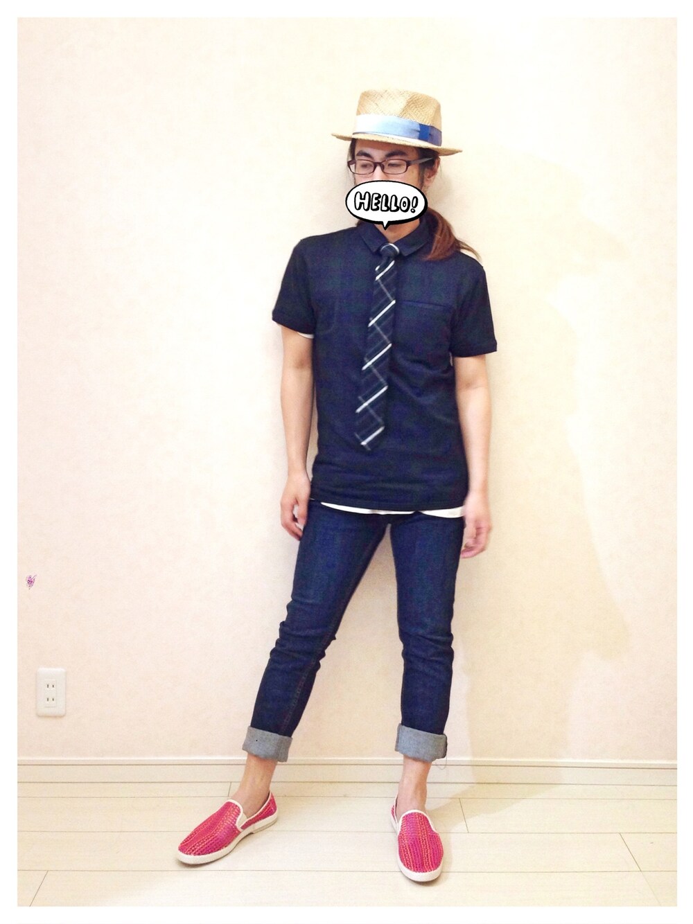 らくのポロシャツ「Tie Polo Shirt」を使ったコーディネート