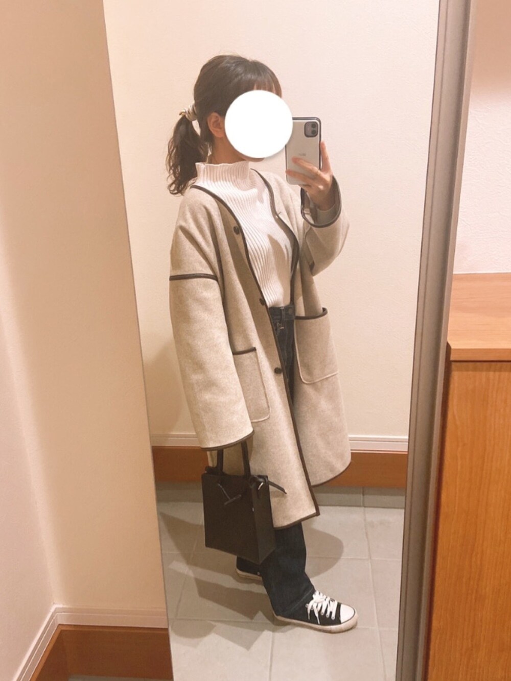 * . パイピングコート着回しです! カジュアルにしてみました〜🥳 靴バッグはブラックで統一感を出してます!. . *
