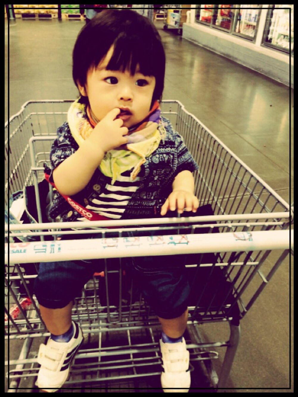 コストコへお買い物♪の前に寄ったアウトレットで一目惚れで買ったペイズリー柄っぽいシャツを買ってすぐ着せた♡ このシャツいいわー 気に入ったわー