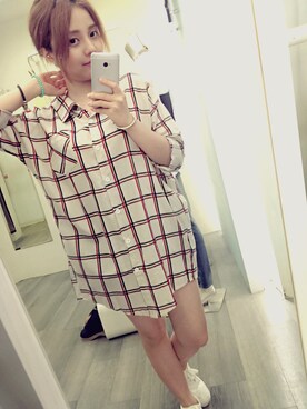 「アイテム(シャツ/ブラウス、ベージュ系)」を使った、路菲さん(レディース・151cm)の春コーディネート
