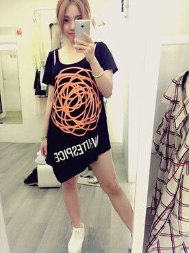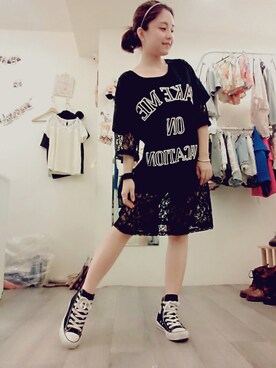 「アイテム(ワンピース、ブラック系)」を使った、路菲さん(レディース・151cm)の春コーディネート