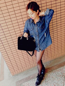 「アイテム(シャツ/ブラウス、ブルー系)」を使った、路菲さん(レディース・151cm)の春コーディネート