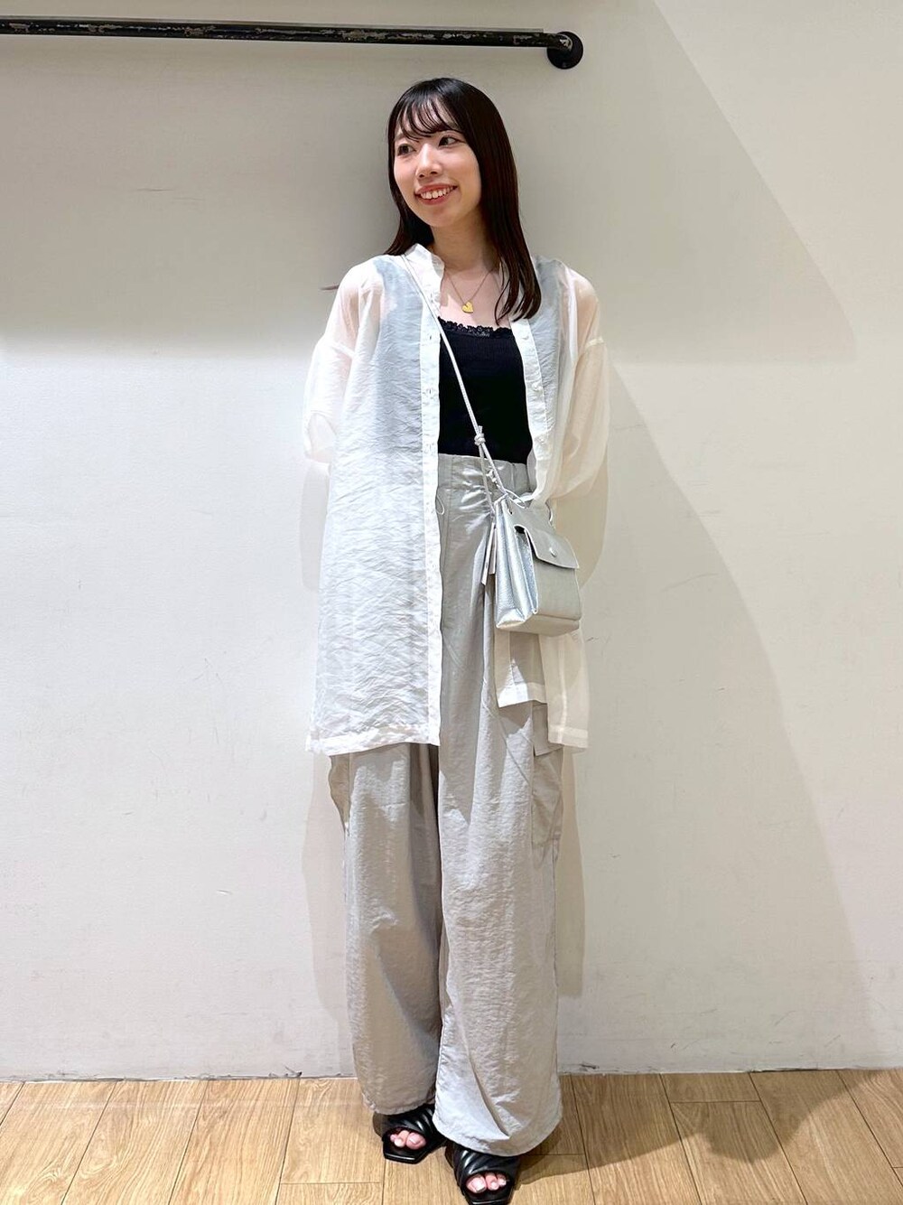 今からも秋も着れるコーデ🤍 【トップス】 シアーシャツは軽い羽織り心地でサラッとしてるので今の時期からも着ていただけます! 丈感も長めなので腰やお尻周りもカバーでき嬉しいアイテムです🎶 【ボトムス】 ワイドパンツはボリューム感がありますが重くなく、動きやすい楽ちんアイテムです🫨✨ ハイウエストなのでインして履いて頂くと脚長効果も期待できます◎