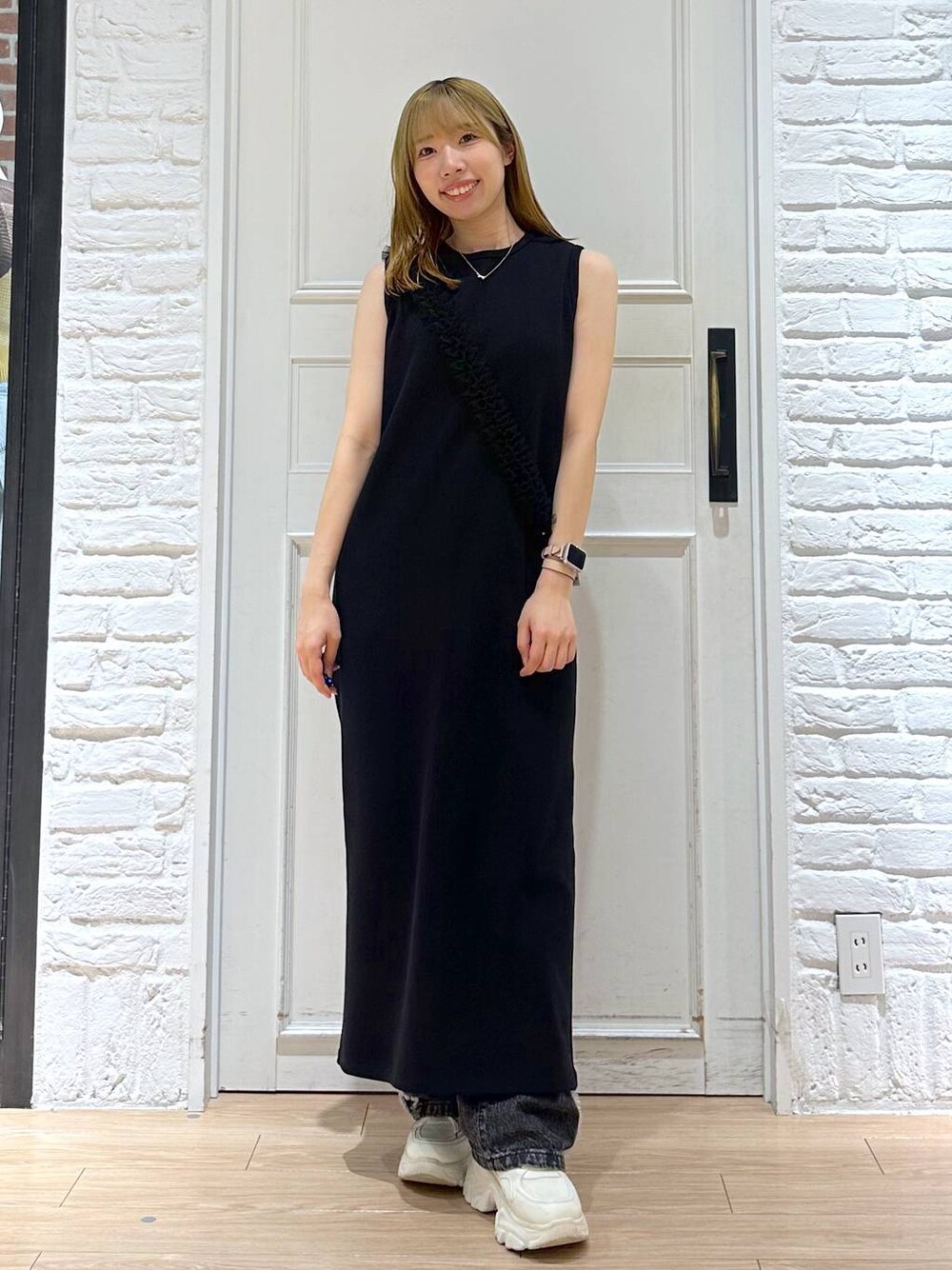 こちらのワンピース、、なんとセールアイテムに🥹✨ ノースリーブですが、生地感厚めなので秋も羽織り等と合わせてきていただけます😚🍂 私の悩みである下半身カバーもしっかりとしてくれてラインを拾わず綺麗なシルエットで着れるのでおすすめです!