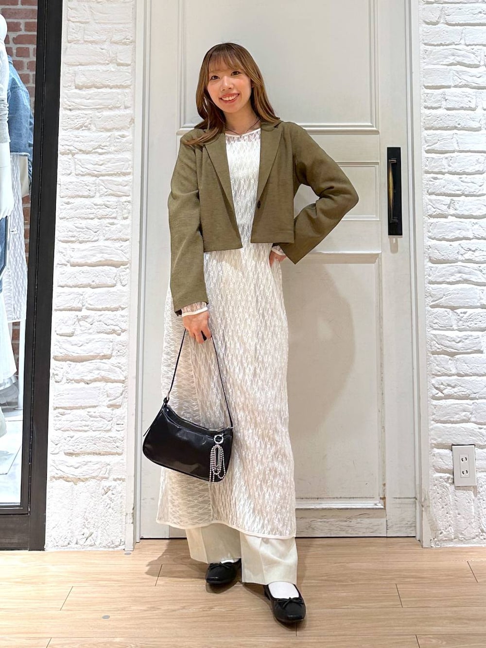 ジャケットにトレンド感のあるレースアイテムをプラスしました✨ ジャケット➡︎ショート丈なのでスタイルアップ効果も抜群です😆🌟シワにもなりにくいのでお手入れ簡単! ワンピース➡︎重ねるだけでおしゃれ見えします✨長袖ですが半袖の上に重ねて着たりしても可愛いです♩