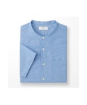 バンドカラーの半袖シャツを買いました。 めずらしく水色。 涼しくてなかなか良いです☺