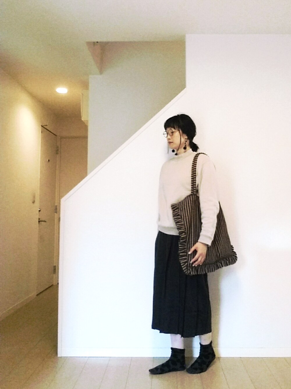 今朝はスウェットでちょうどよいくらい、ひんやりとした空気でした。 まずはプリーツパンツを合わせて、お仕事スタイルにしました☺