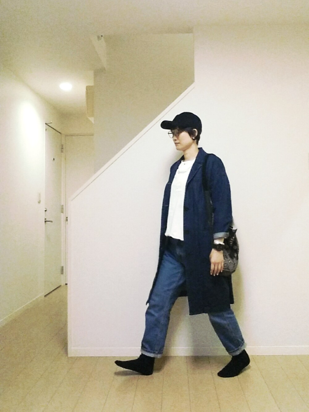 春はる春~☺🌸 水色のデニムを求めて、UNIQLO UのメンズでGET! デニムのコートと合わせて野暮ったく合わせてみました。