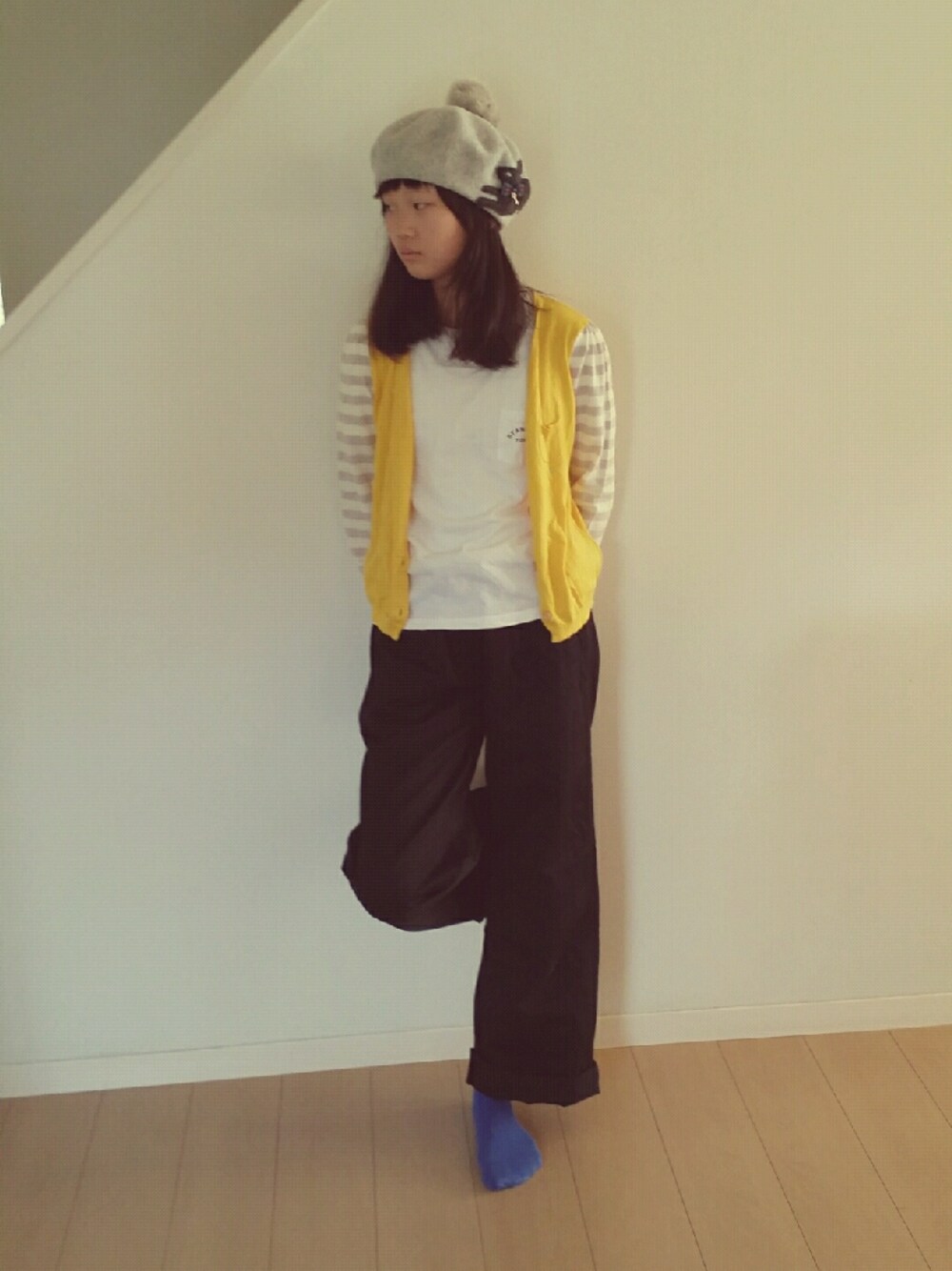 お月さま、きれいに見えました♪ 黄色のカーデに、うさぎのベレーでお月見コーデ!