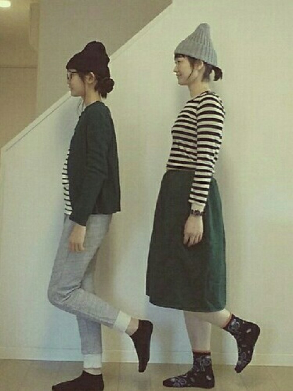 見に来ていただいてありがとうございます。 グリーン×ボーダーの親子コーデでお出掛けです♪