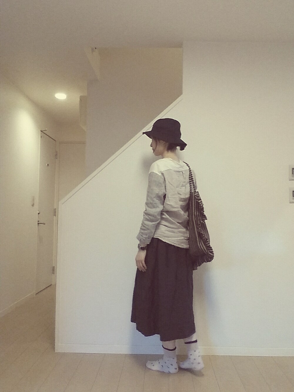 見に来ていただいてありがとうございます。 ゆったりTeeにゆったりスカートでリラックススタイル。 帽子とシューズはブラックにしました。 我が家は土足禁止なので、シューズ画像は小窓にのせてますf(^_^; 今日もお付き合いいただき、ありがとうございます♥
