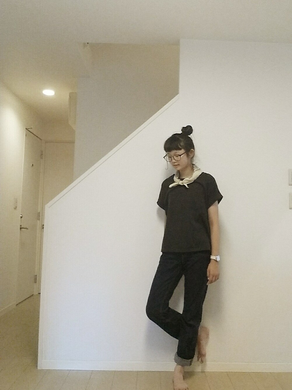 こんにちは、見に来ていただいてありがとうございます。 いいね、SAVE、フォロー、コメント、とっても嬉しいです。 娘13さいのコーディネート。 バンダナ付きのポケットT、付いてた赤いバンダナを外して今日はアイボリーのバンダナを付けたい気分でした。 Tシャツのカラーは、焦げ茶色のようなグレーのようなスミクロのような、何とも言えない色が好みです♪ 今日もお付き合いいただき、ありがとうございます♡