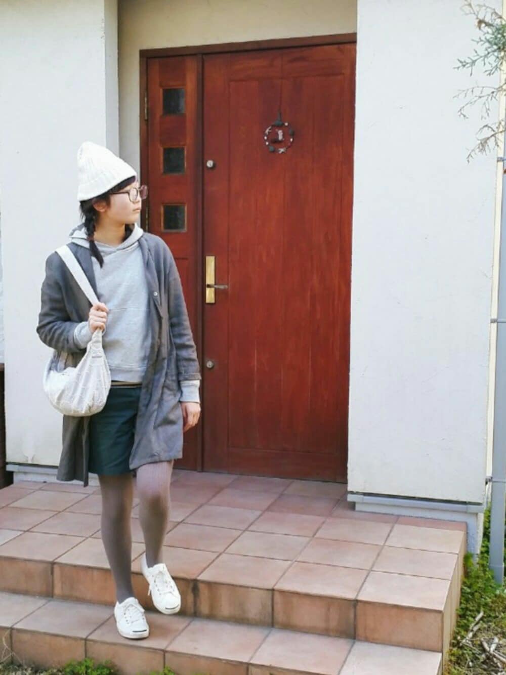 足の色が気持ち悪いことになってますが、グレーのタイツをはいています。 もうすぐ桜も見頃になりそうですね🌸 お友達とピクニックの計画中♪ 今日もお付き合いいただき、ありがとうございます♡