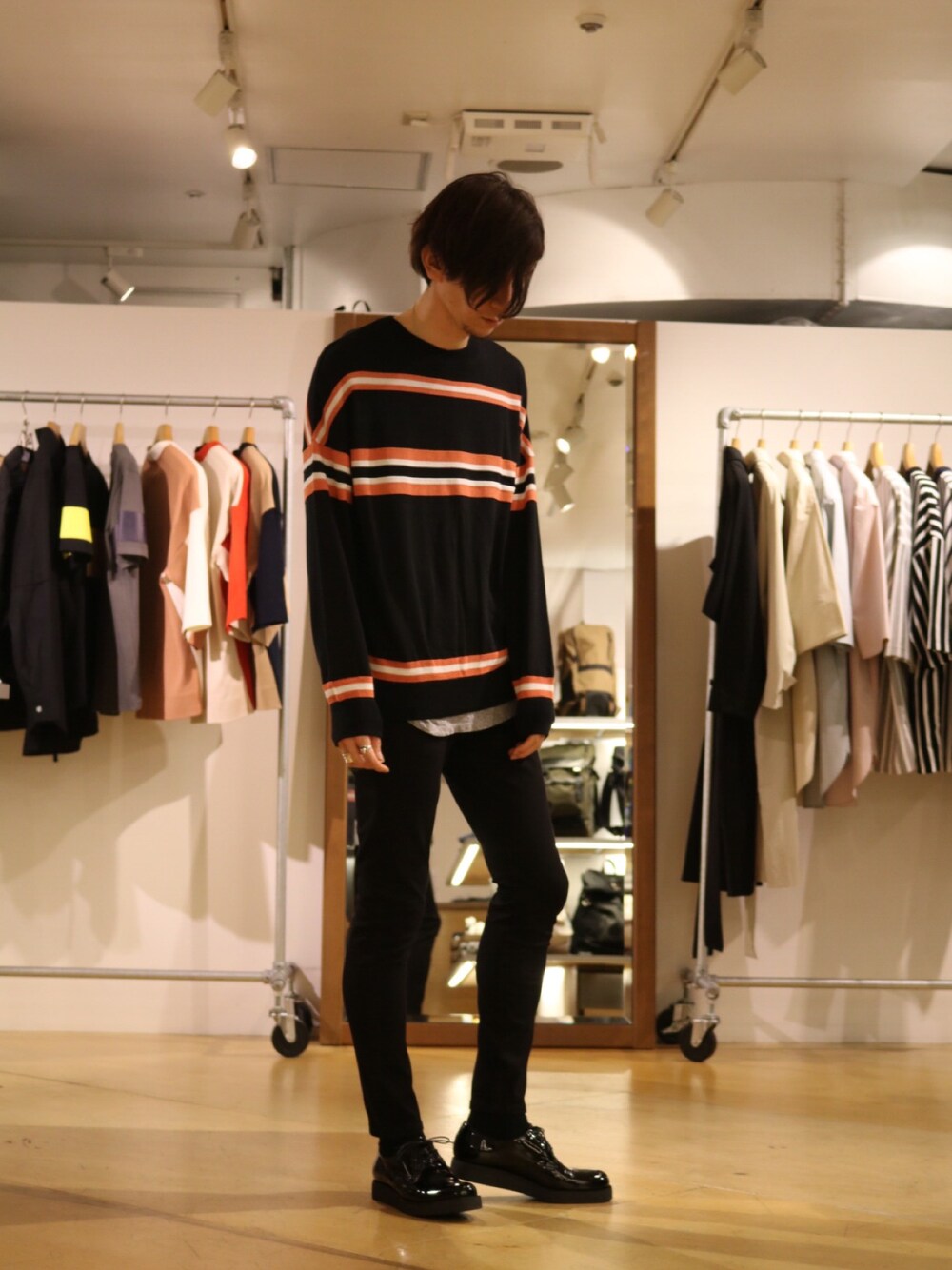 Lui's 池袋 STAFF 芳村のニット/セーター「ボーダードルマンニット」を使ったコーディネート