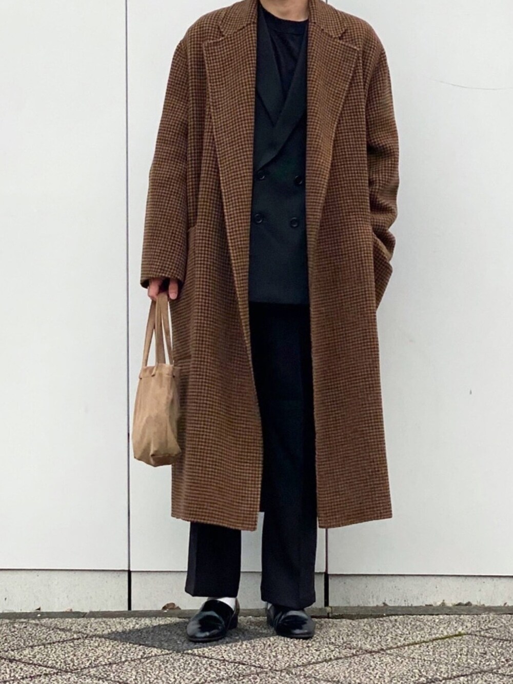 るか。のチェスターコート「オーバーチェックコート」を使ったコーディネート