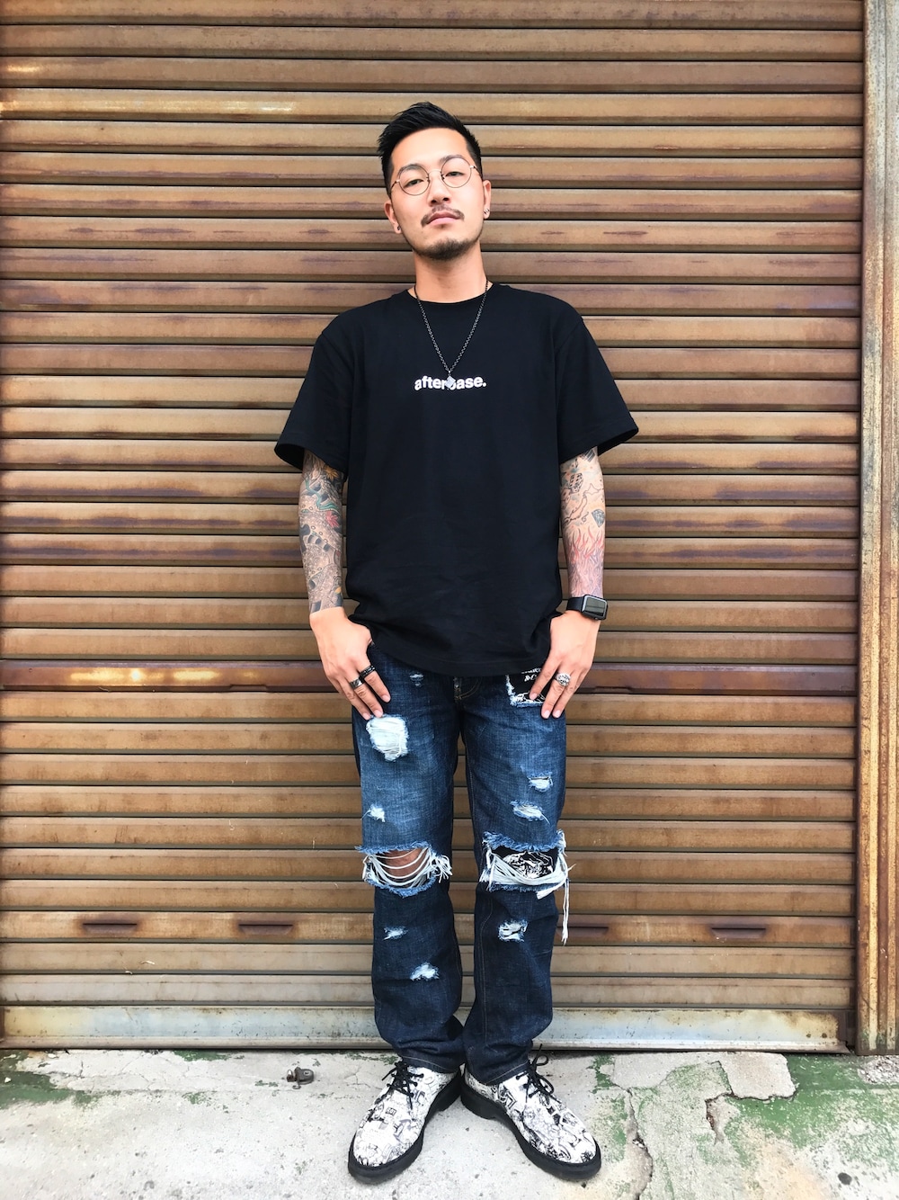 モノトーンをベースに supremeのpantsは自分でダメージ加工して RULERのバンダナを流用して裏当て 小物を多めに入れて他との差をアピール