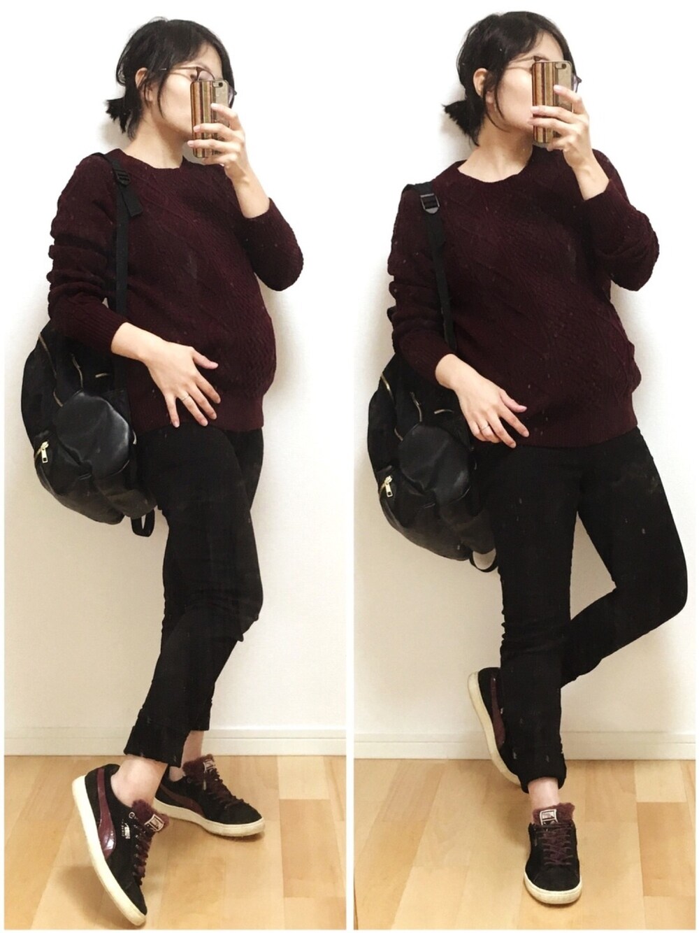 連日の雨で寒い そんな日は暖かくして… トップスは新作ニット UNIQLO ケーブルクルーネックニット INES DE LA FRESSANGE 世界的に有名なモデルとのコラボレーションアイテム 着用サイズ▶︎XL (普段はMサイズ着用) 背部から袖までもケーブル編みで 厚手で可愛い一着 ゆったり着たかったのでオーバーサイズで メンズものより 女性らしいシルエットは残しつつ 着れる気がして気に入ってます UNIQLO マタニティウルトラストレッチジーンズと合わせて、今日も上下UNIQLO