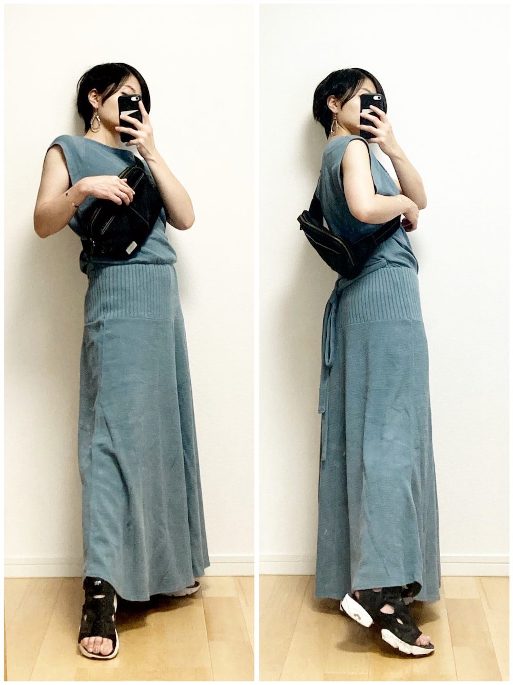 archi ワッフル地のロングワンピース ウエストにゴムがついていて、丈感の調節が自由自在 ウエストマーキングできるリボン(取外し可)もあって表情が変えられるから着てて飽きない この夏は コノ組み合わせがしっくりきました