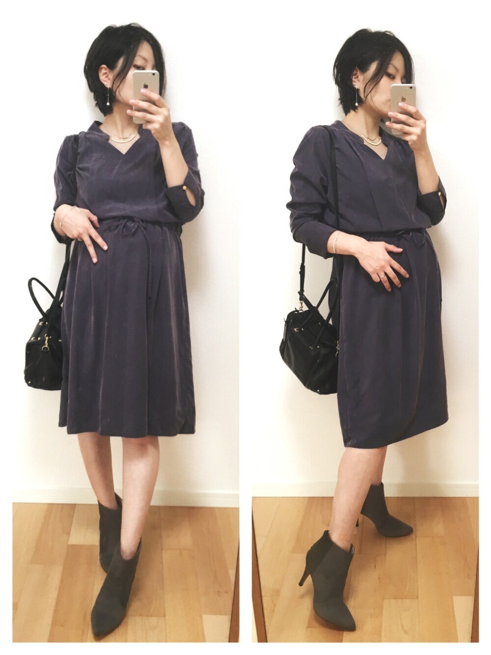 ウエスト部分の締め具合でスカート丈を好みの長さに調節可能だし、ストンと落ち感のある素材で着心地も抜群 臨月の妊婦でもワンピースなら楽チン♪ …新しぃ服を買うと、それに合わせて靴も欲しくなって買ってしまった←転倒注意だね