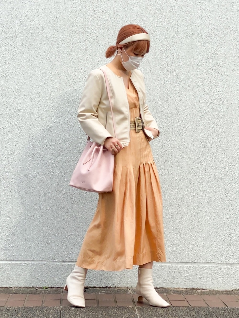 今日くらい暖かい日が365日続いたらいいのにな。 カチューシャ見せたいので全身うつしてみた。 かわいい壁も見つけた!うれしー ただvintageのベルトが緩すぎて必死で押さえつけてますw