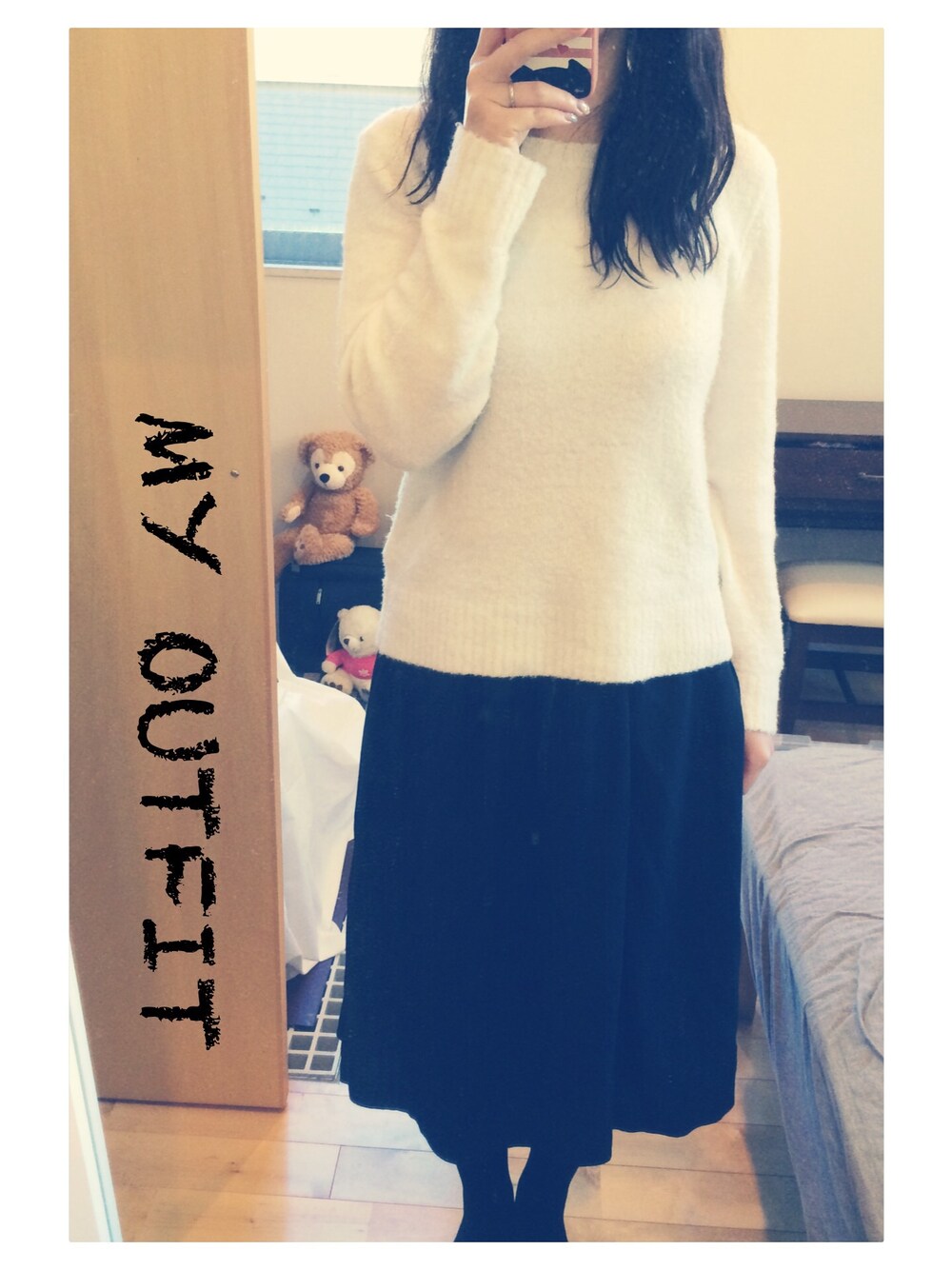 どうしても冬は白ニットばっかり買ってしまうー。 私の身長でも、この丈のスカート履きやすくて気に入ってます☺︎