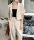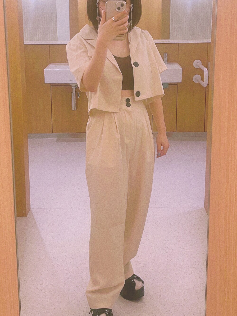 あじのセットアップ「半袖ショートサマージャケット+タック入りワイドパンツ セットアップ」を使ったコーディネート