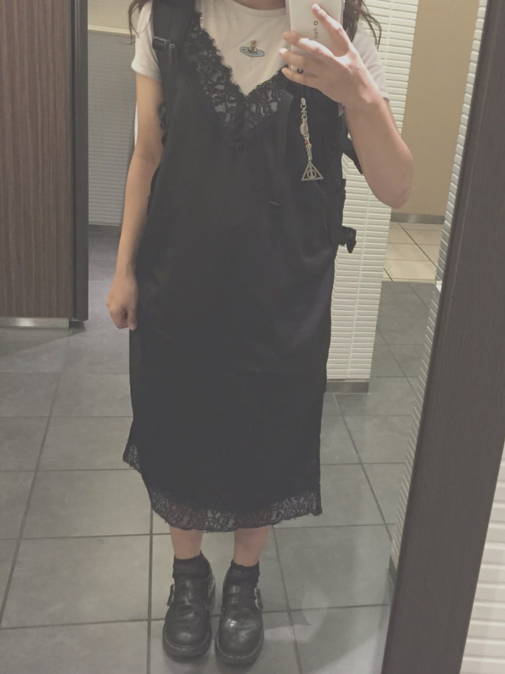 網靴下とMARY JANEの相性良き👌💗💗 bubblesのランジェリーワンピは 横にスリットが入ってて 胸元と裾がレースになっててかわいい🐰💕