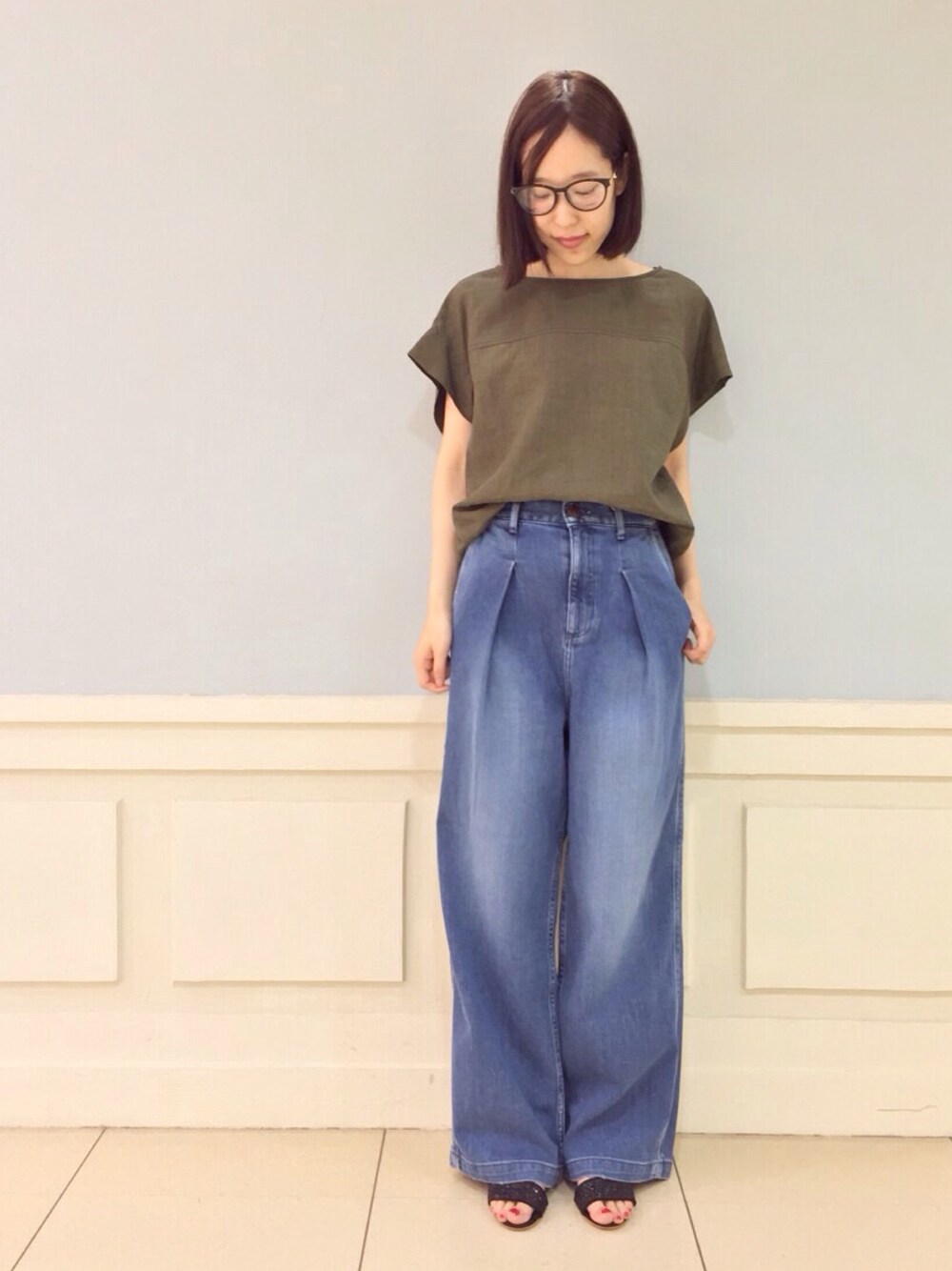 お気に入りのワイドパンツでコーディネート★最近はカーキが気になります(^o^)