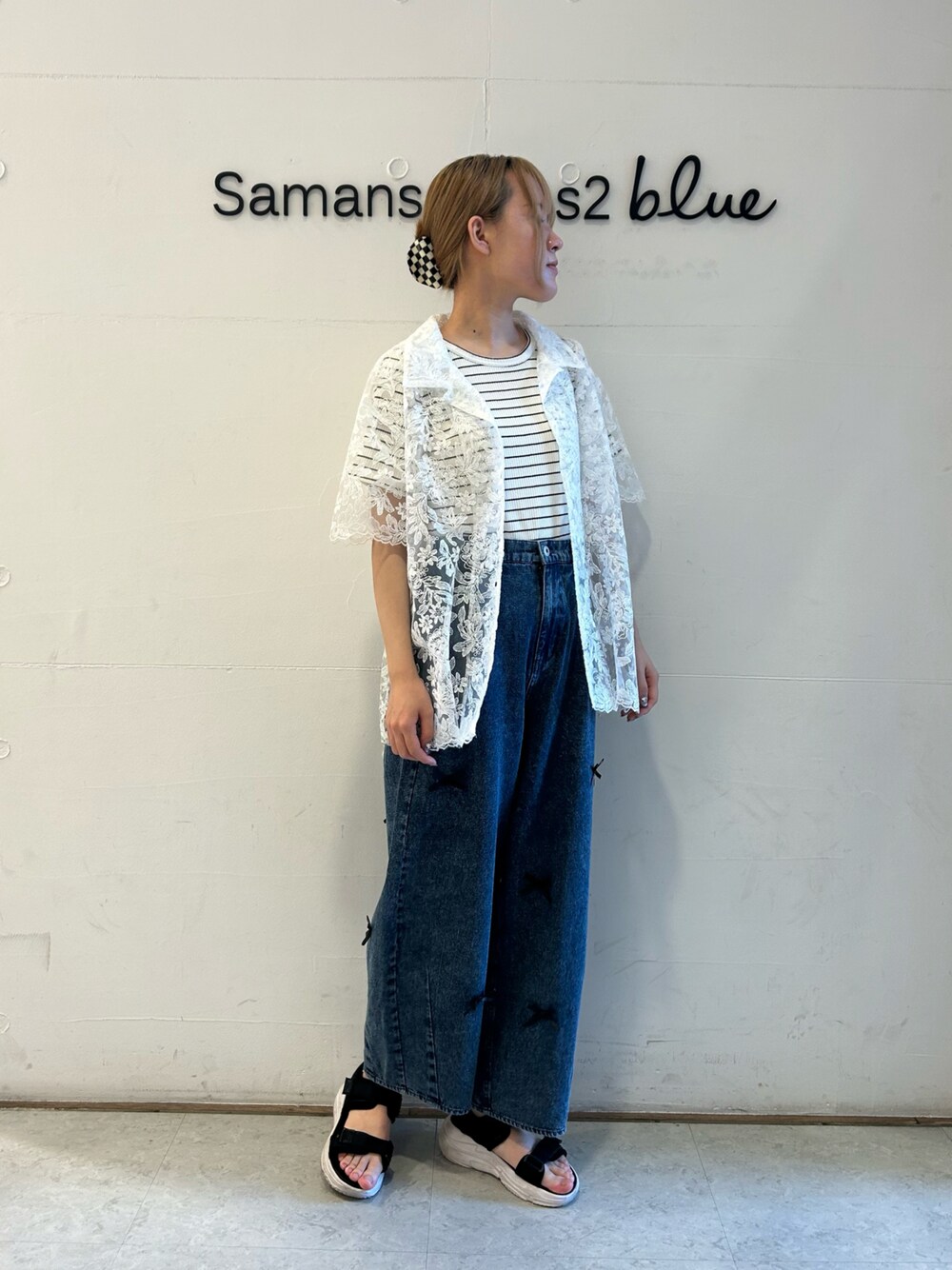 Renaのデニムパンツ「リボン付ワイドデニムパンツ」を使ったコーディネート