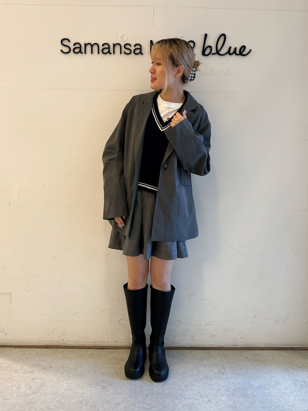 秋のジャケットコーデ スクール風にまとめてみました◎ Tシャツとロングブーツなどを合わせることでスクールになり過ぎず着ていただけます