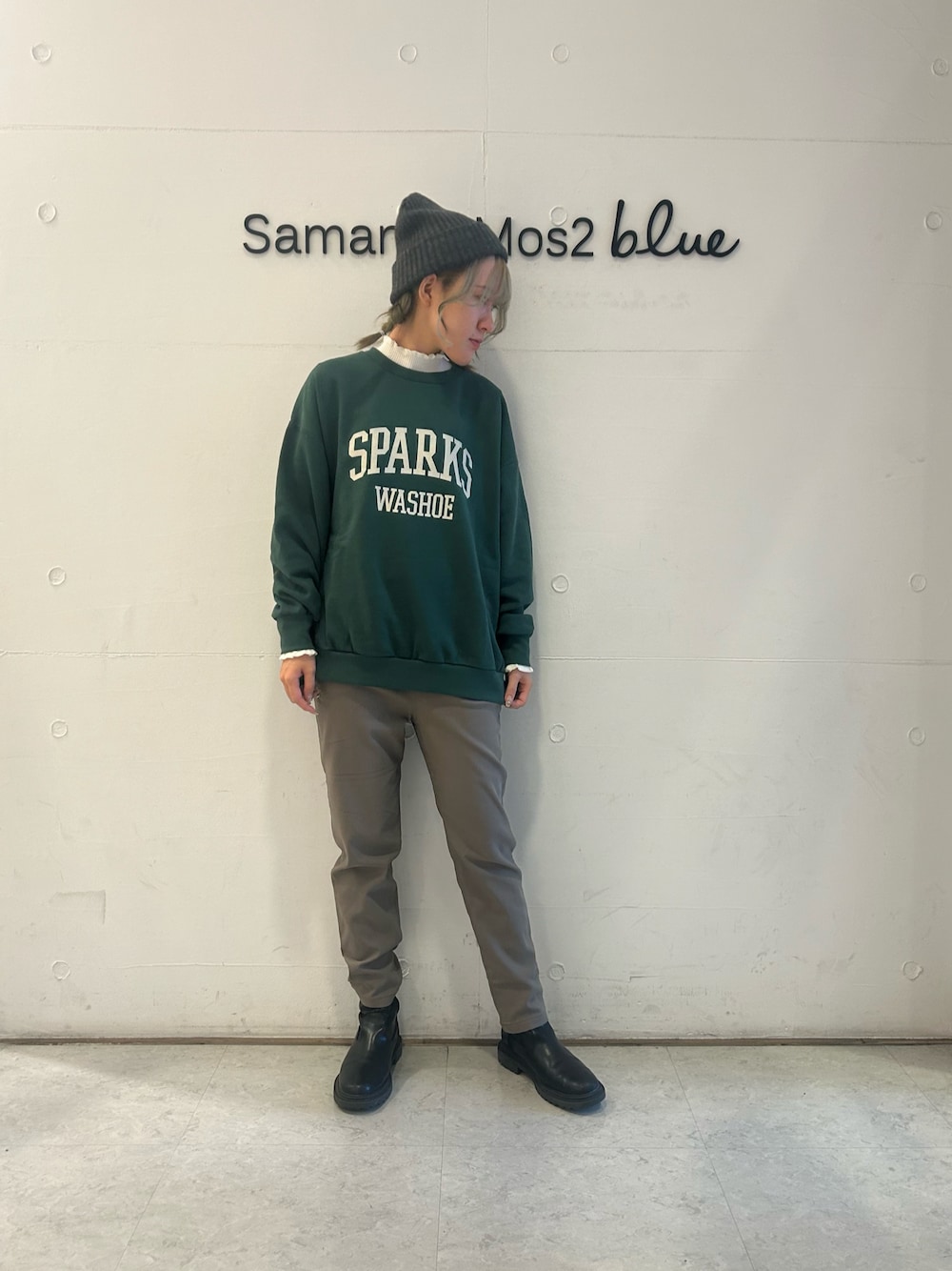 ゆったり大きめのスウェットと細めシルエットのパンツコーデ シンプルなアイテム達を合わせたカジュアルコーデ どちらのアイテムも着回し力抜群です✨ トップスもパンツもしっかりあたたかい素材でできている為これからの季節にピッタリです◎